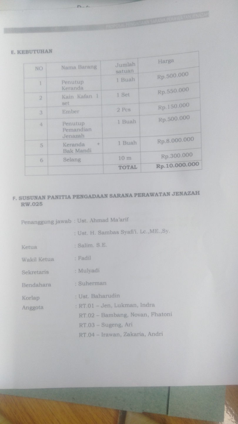 DONASI PENGADAAN KERANDA RW 025